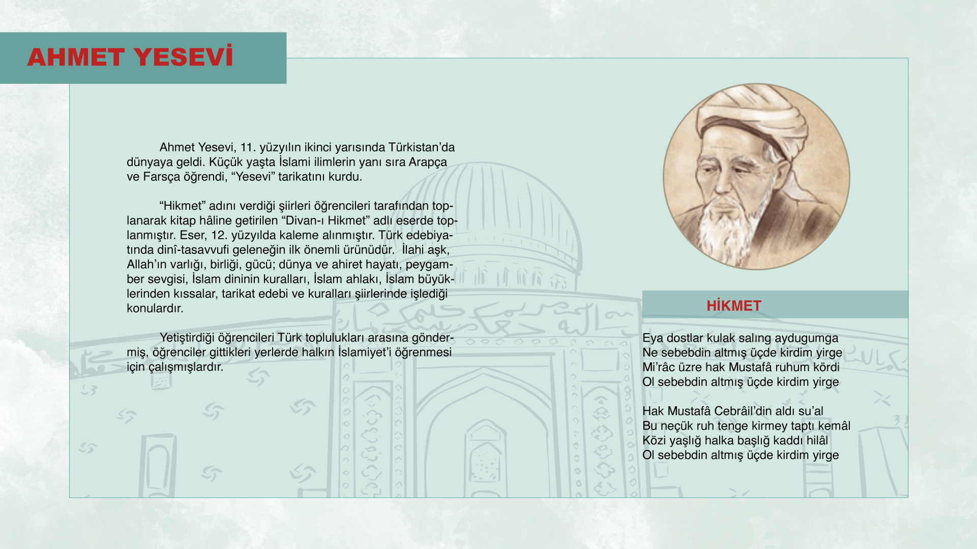 Ahmet Yesevi hakkında bilgi veren infografik içeriktir.